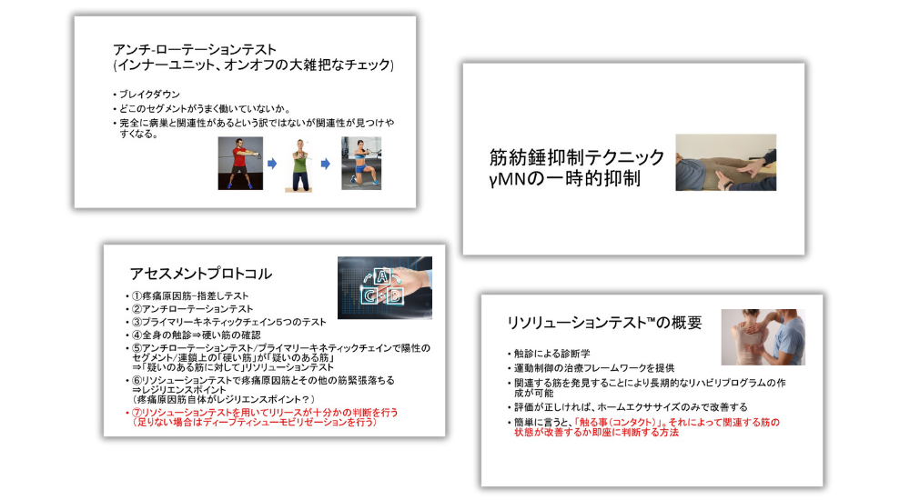本セミナーで習得する【リソリューションテスト™】は、複雑に絡み合った運動連鎖の中から、機能不全の発生源をピンポイントで特定します。